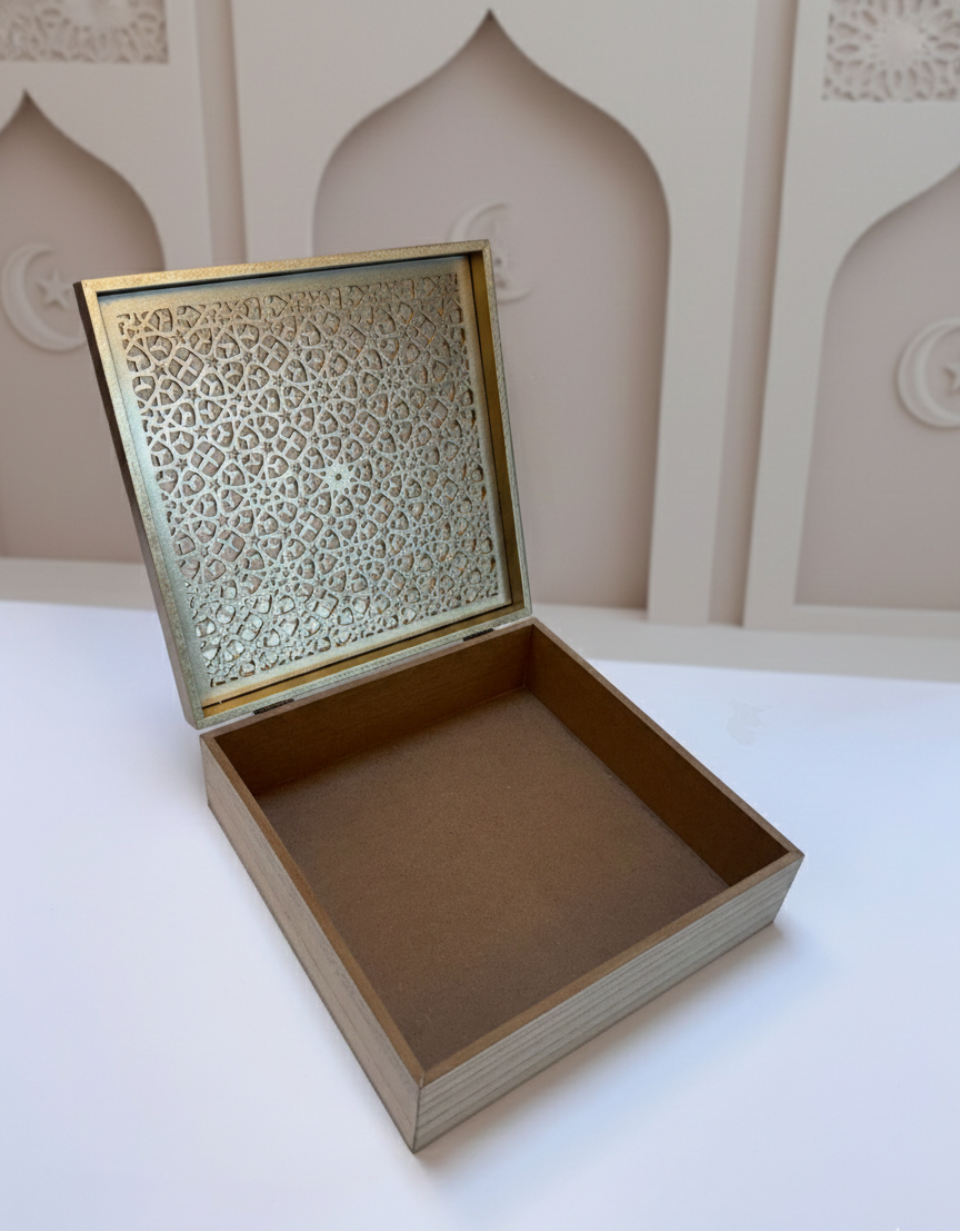 Luxury Ramadan Wooden Gift Box Golden – Decorative Islamic Storage Box