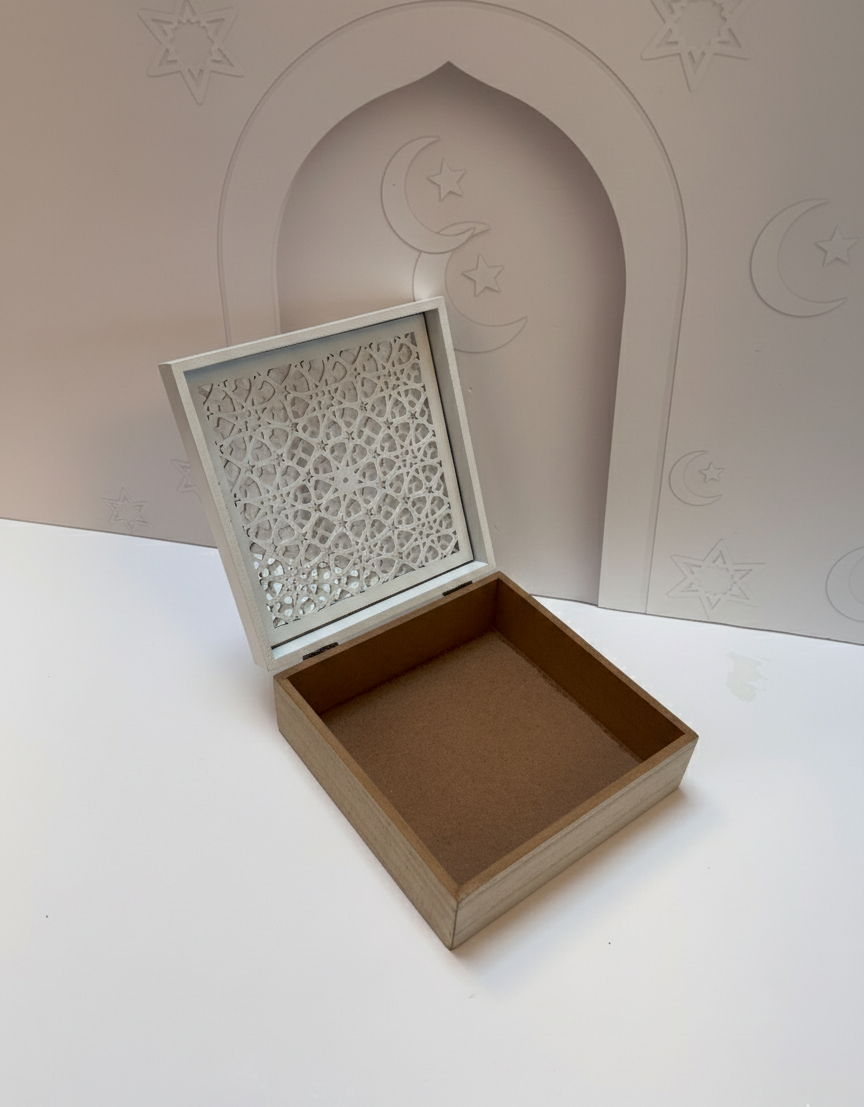 Luxury Ramadan Wooden Gift Box White – Decorative Islamic Storage Box